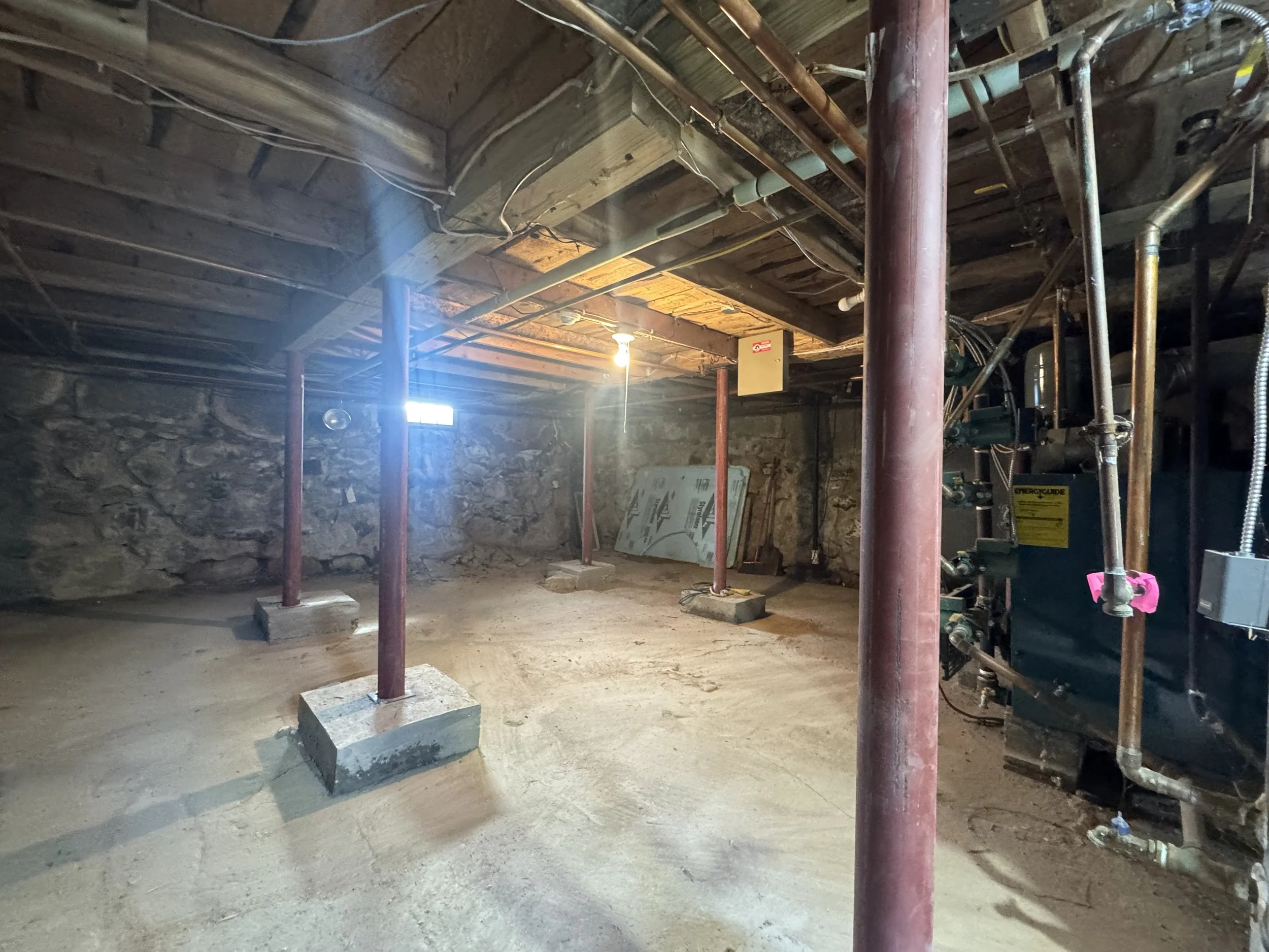 Strengthening a Southern Maine home with a basement, lally column replacement.